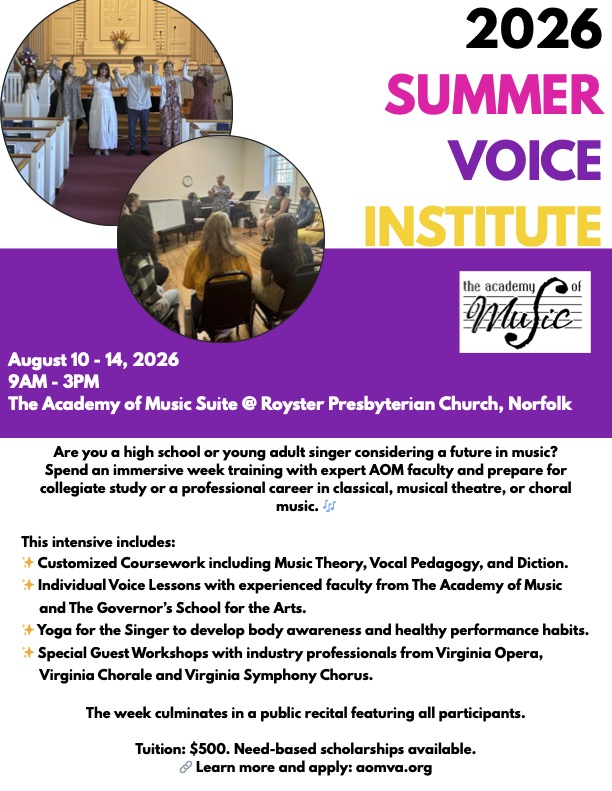 This program is aimed at rising sophomores in high school through sophomores in college with a love of music and singing.